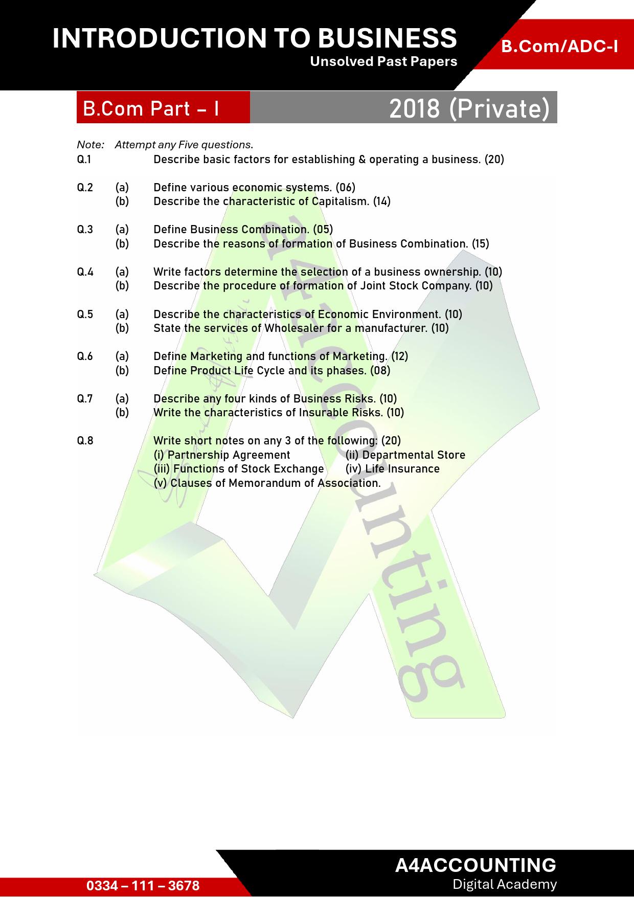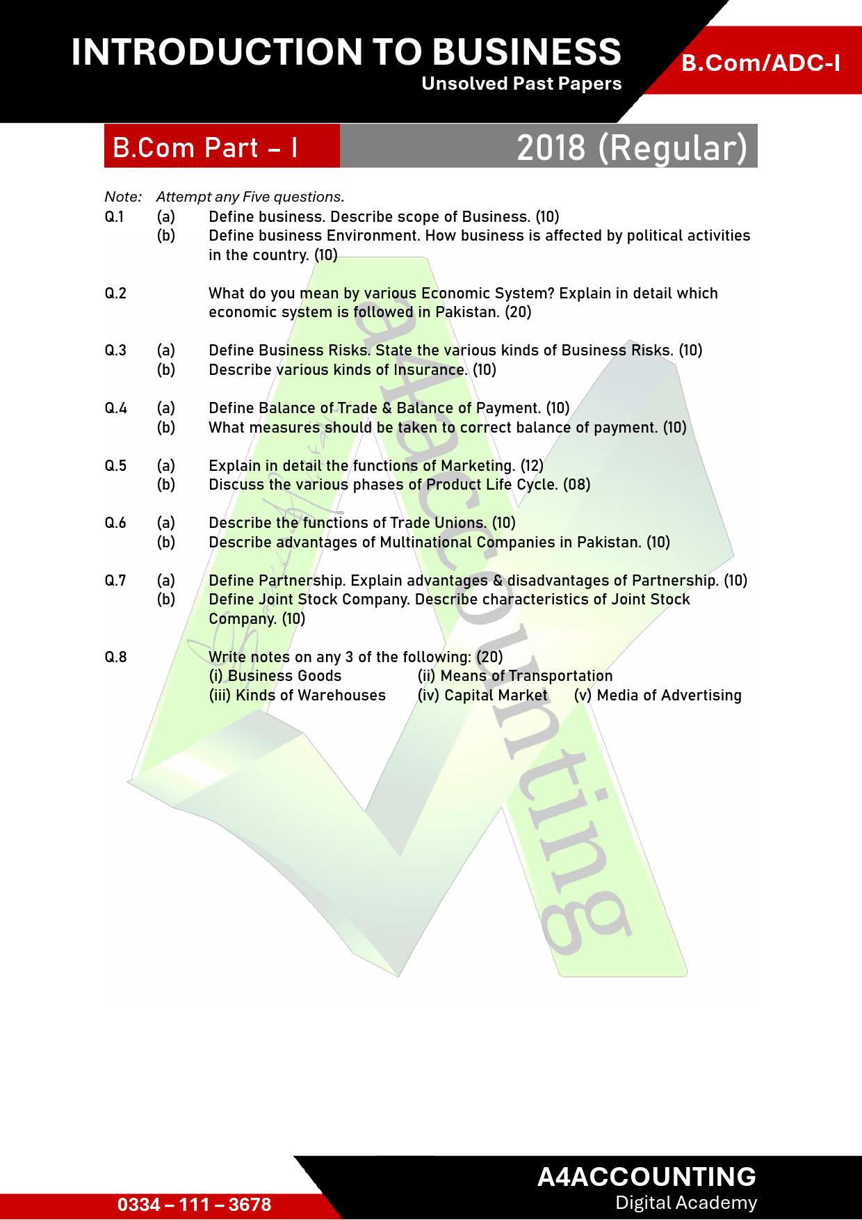 B.Com Part - I (Unsolved Past Papers)